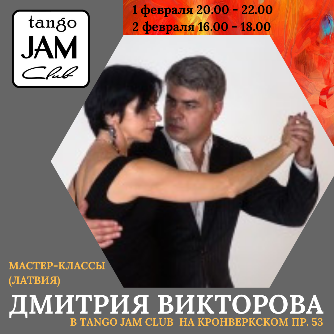 Tango JAM club приглашает на мастер-классы Дмитрия Викторова (Латвия) по милонге, которые пройдут 2 февраля 2019 на Кронверкском проспекте 53.